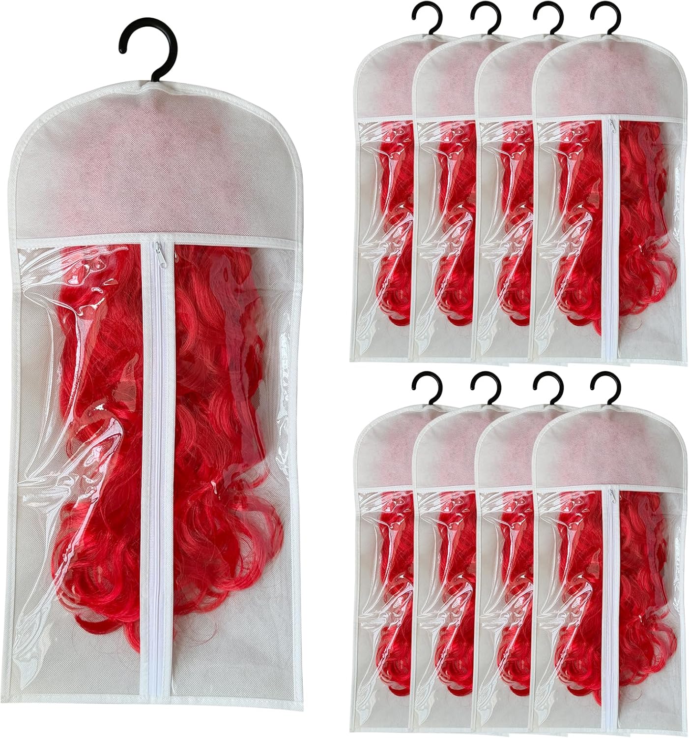 8x Dust-Proof Wig & Extension Storage Bags (with Hanging Hooks)