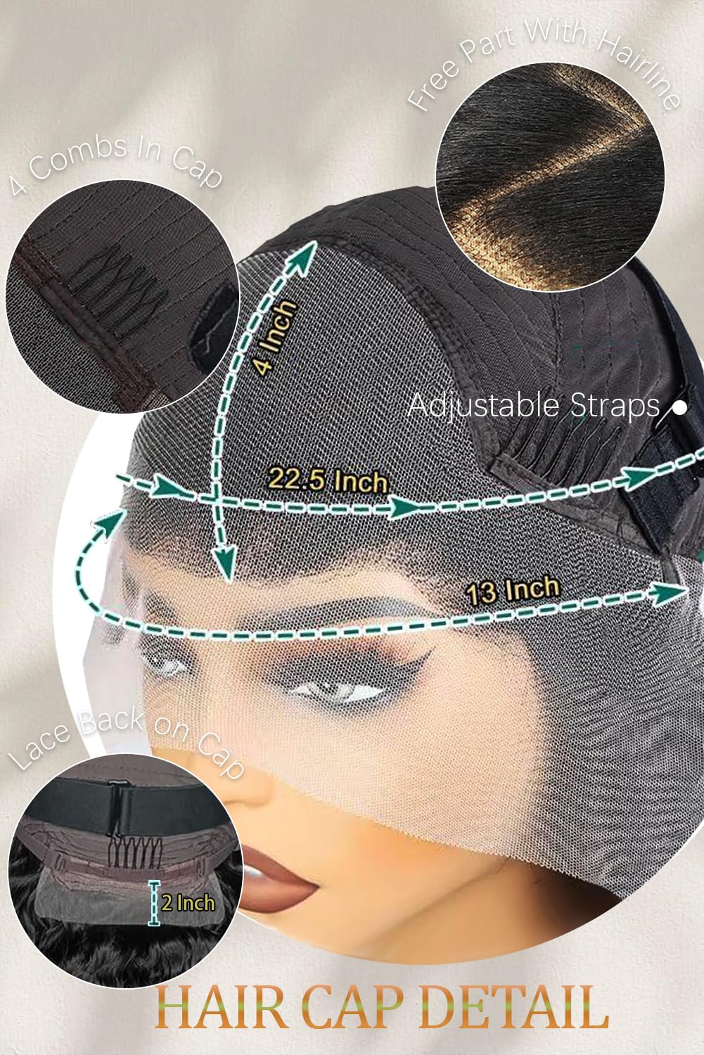 13×4 Lace Frontal Wigs Human Hair – Kinky Curly & Deep Wave, 180% Density, 10A Grade Brazilian Virgin Human Hair, Pre Plucked