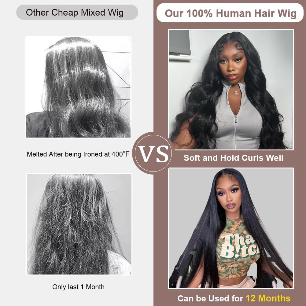 13×6 Lace Front Wigs Human Hair – 200 Density HD Full Frontal Straight Lace Front Real Human Hair Wigs, Pre Plucked for Women, Tiny Knots, No Tangle, Minimal Shedding, Longer Lifespan