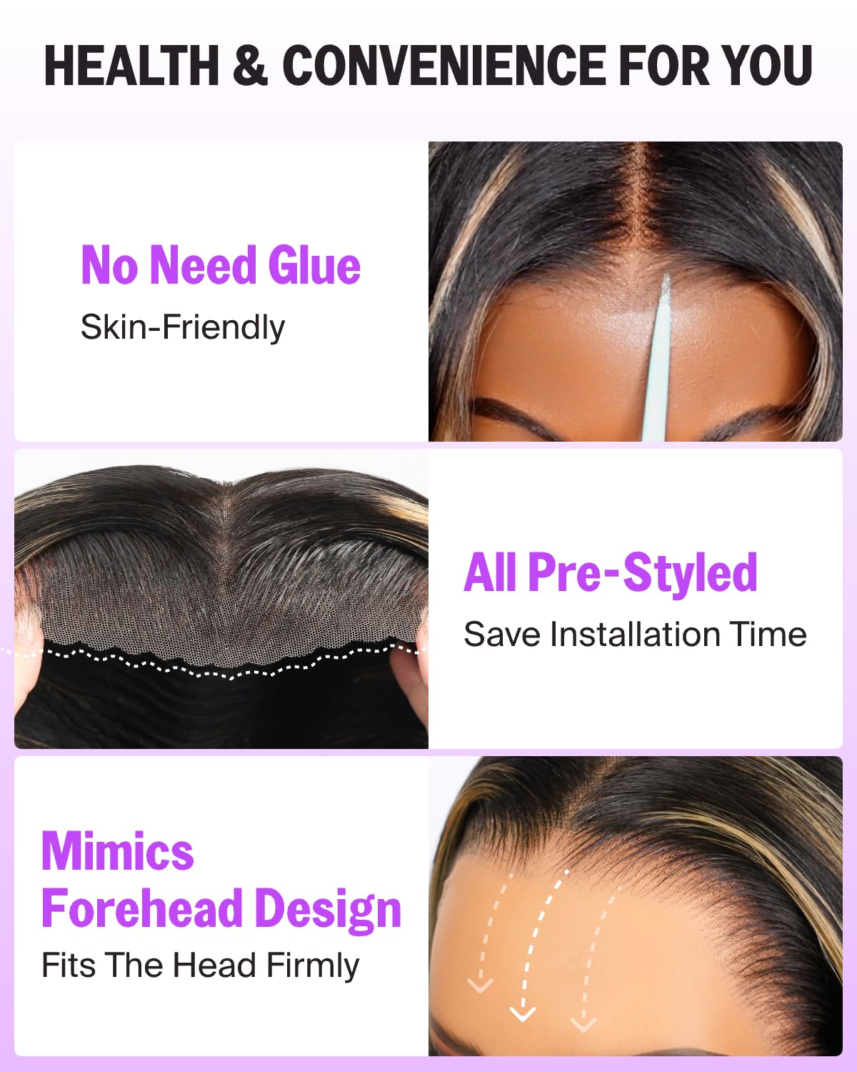 ✔️ Pre-Cut & Pre-Plucked – Natural hairline with fine baby hairs; zero prep needed