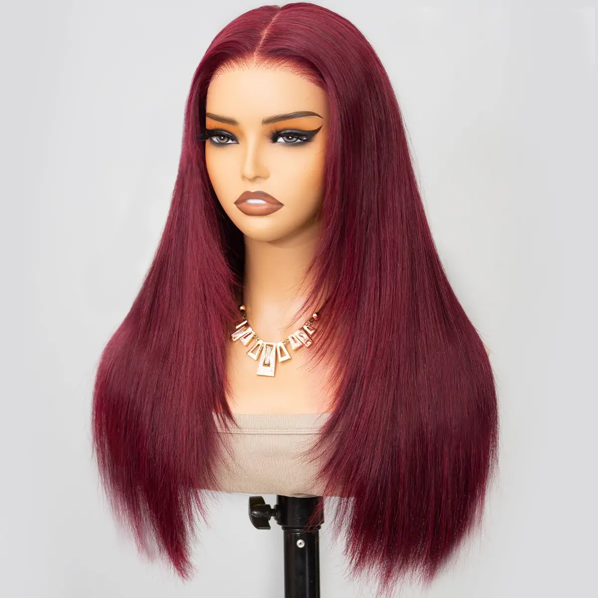 Layer Cut Straight Glueless Wig – 99J Burgundy, 6×5 Pre-cut HD Lace, 180% Density, a stunning fusion of rich burgundy hue, structured layering, and HD scalp illusion that turns heads from every angle. This isn’t just a wig — it’s your most confident self, styled in seconds. Crafted from 100% virgin human hair, it delivers luxurious softness, high-shine finish, and natural movement — no synthetic blends, no mix fiber, just pure, cuticle-aligned strands you can style like your own. The layered cut features shorter pieces around the crown and face, enhancing cheekbones and jawline, while the pin-straight texture offers polished elegance. In 99J Burgundy, this deep wine-red tone adds bold warmth and flatters fair to deep skin tones. With the 6×5 HD transparent lace frontal, you get an undetectable part line, while the glueless design means it’s ready to wear out of the box — no cutting, no plucking, no glue, no waiting.💡 Note: “99J” = Rich Burgundy – deeper than red, warmer than black