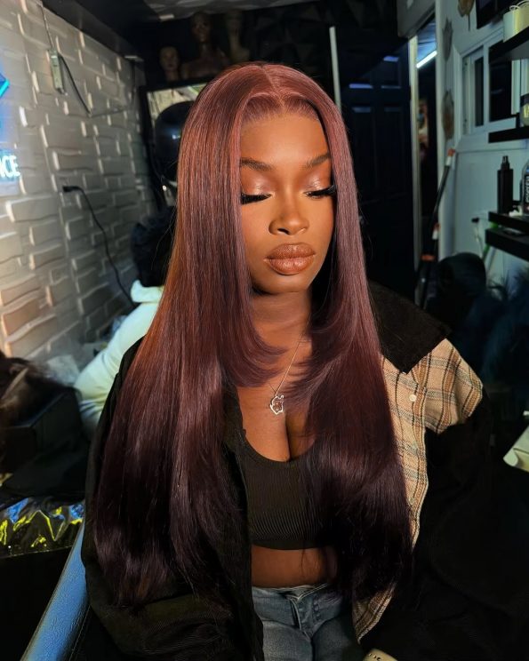Introducing The Beautiful – Layer Cut Straight Glueless Wig in 99J Burgundy: