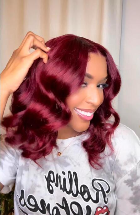 Glueless 6×5 Pre-cut Lace Closure Wig – 99J Burgundy / Dark Brown Short Cut Loose Body Wave Wig