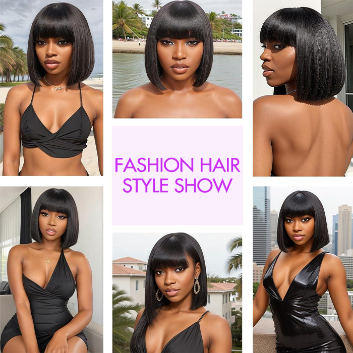 Introducing The Sleek. Soft. Seamless – Straight & Yaki Straight Bob Wig with Fringe Bangs :