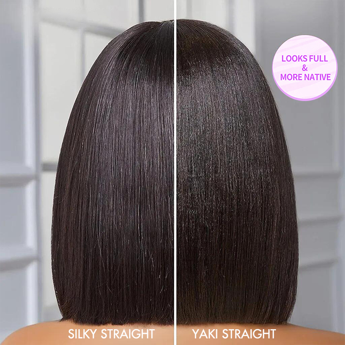 Straight & Yaki Straight Bob Wig With Fringe Bangs – Wear Go Glueless Wig, 180% Density, Realistic Scalp